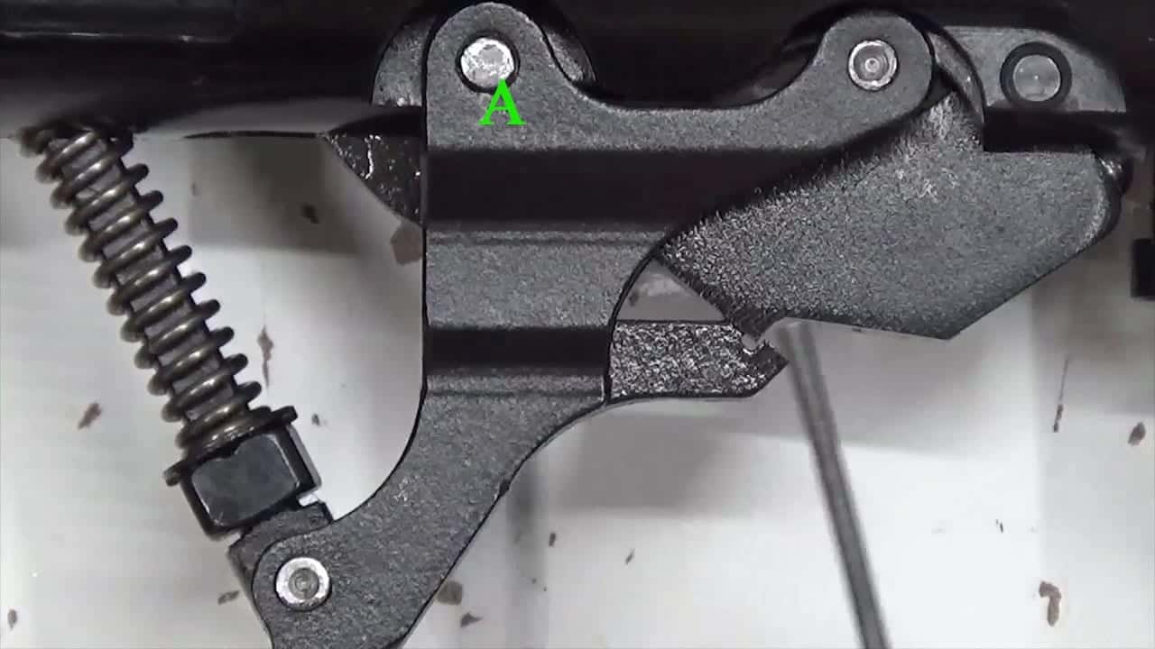 - Remove rear pin from trigger mechanism (item A).